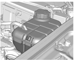 If coolant is visible but the coolant level is not at or above the mark pointed to, add a 50/50 mixture of clean drinkable water and DEX-COOL coolant.
