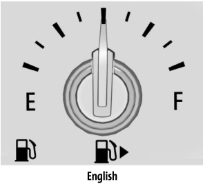 When the indicator nears empty, the low fuel light comes on. There still is a little fuel left, but the vehicle should be refueled soon.