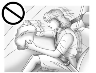 Never hold an infant or a child while riding in a vehicle. Due to crash forces, an infant or a child will become so heavy it is not possible to hold it during a crash. For example, in a crash at only 40 km/h (25 mph), a 5.5 kg (12 lb) infant will suddenly become a 110 kg (240 lb) force on a person's arms. An infant or child should be secured in an appropriate child restraint.