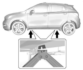 Raising the vehicle with the jack improperly positioned can damage the vehicle and even make the vehicle fall. To help avoid personal injury and vehicle damage, be sure to fit the jack lift head into the proper location before raising the vehicle.